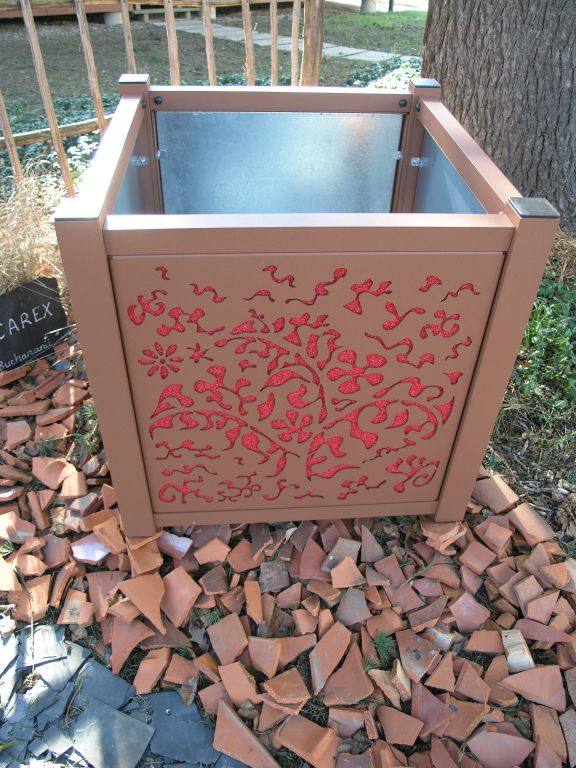 Jardinières en Aluminium Thermolaqué gamme Palmeraie , 11 couleurs au choix , motifs :feuillage ou bambou ou coralys , poteaux de 100x100mm , traverses de 80mm